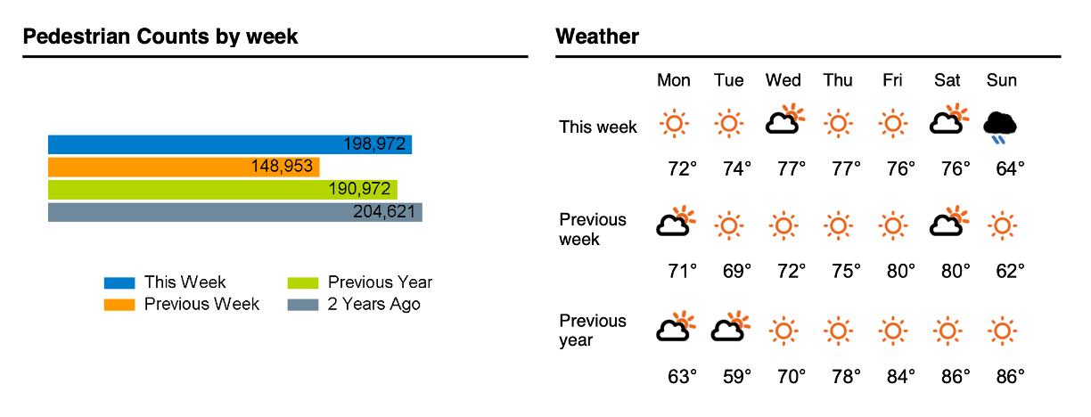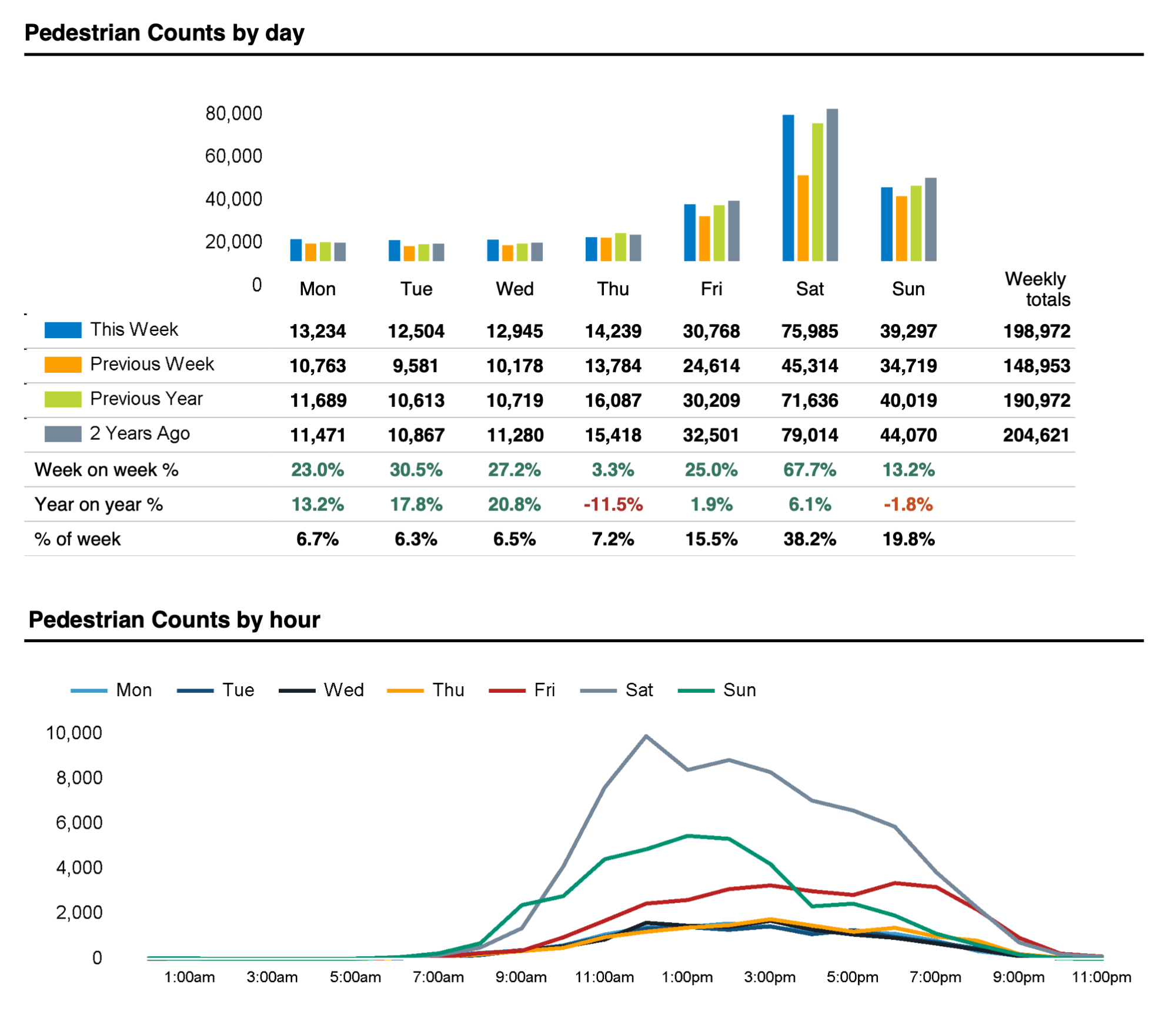 REMINDER: The numbers shown below are footfalls; the counting of the number of times a person walks by the camera, not the number of individual people that do so.