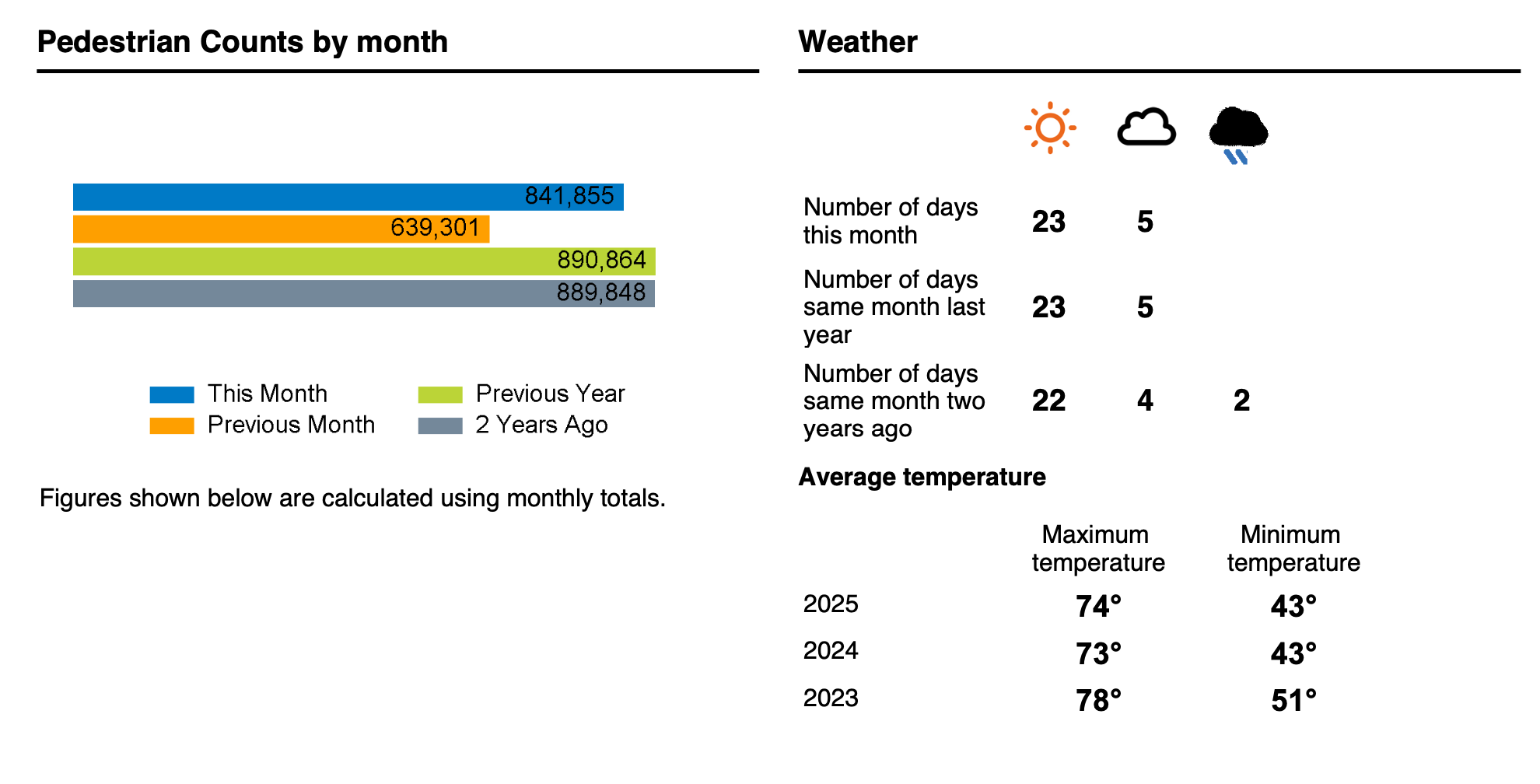 REMINDER: The numbers shown below are footfalls; the counting of the number of times a person walks by the camera, not the number of individual people that do so. The reports are based on the retail calendar for 2025.