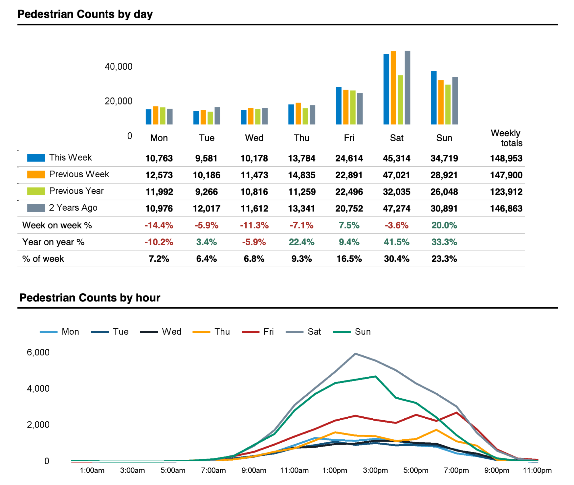 REMINDER: The numbers shown are not people but footfalls, i.e. the counting of the numbers of passersby, not individuals.