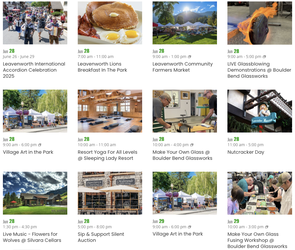 We are pleased to share that we have been working on a promotional calendar for our members! Unlike the event calendar that is housed at Leavenworth.org, the new promotional calendar will share things like your sales events, specials, and benefit nights. More information and launch coming soon, in the meantime...