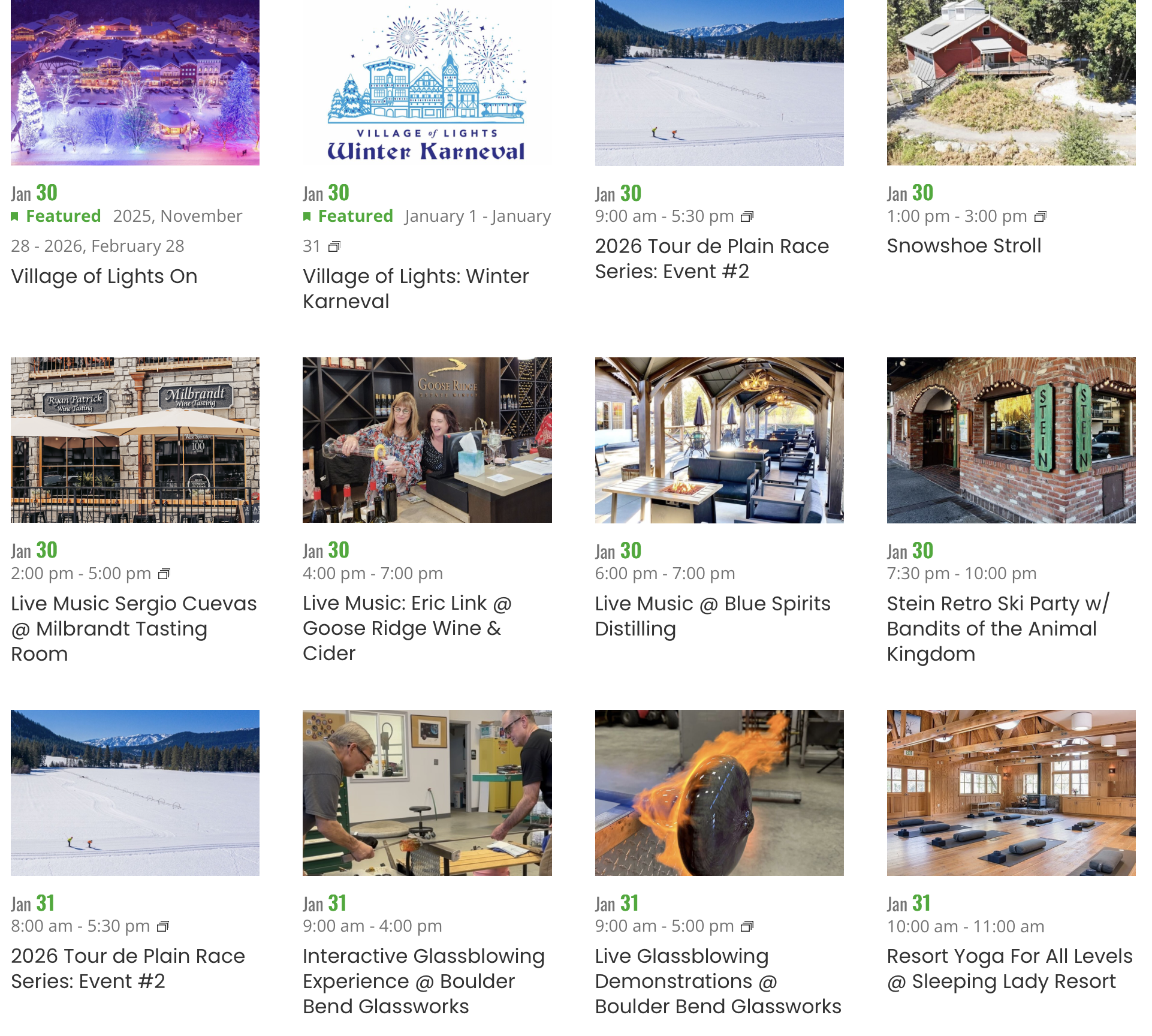 We’ll purchase prizes directly from local businesses and feature them as daily giveaways throughout February, culminating in a grand-prize trip to Leavenworth. Priority will be given to businesses that were not featured in the December Advent Calendar or recent contests.